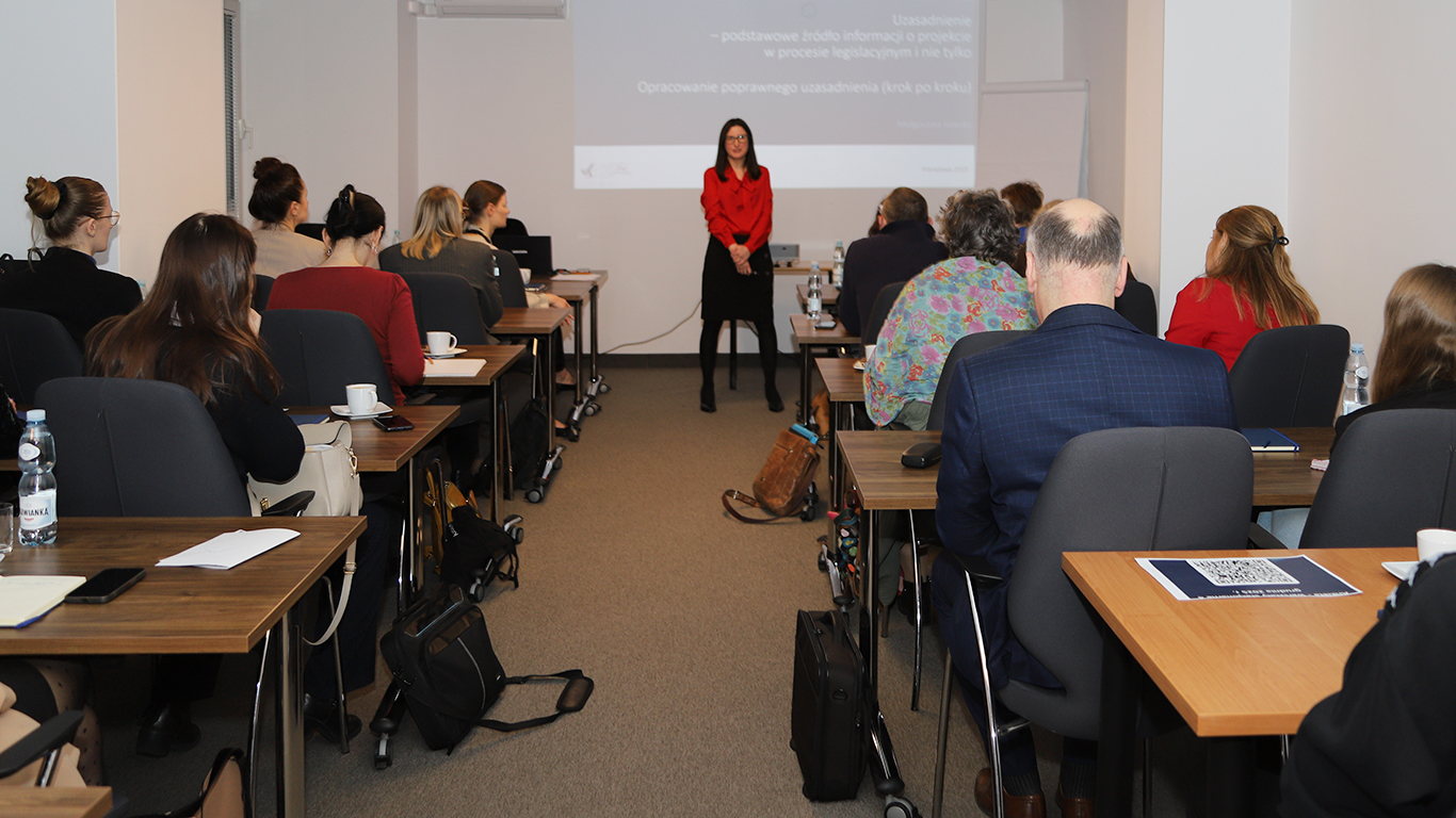 Szkolenie miało na celu przekazanie niezbędnych informacji przydatnych do poprawnego opracowania uzasadnienia projektu aktu normatywnego.